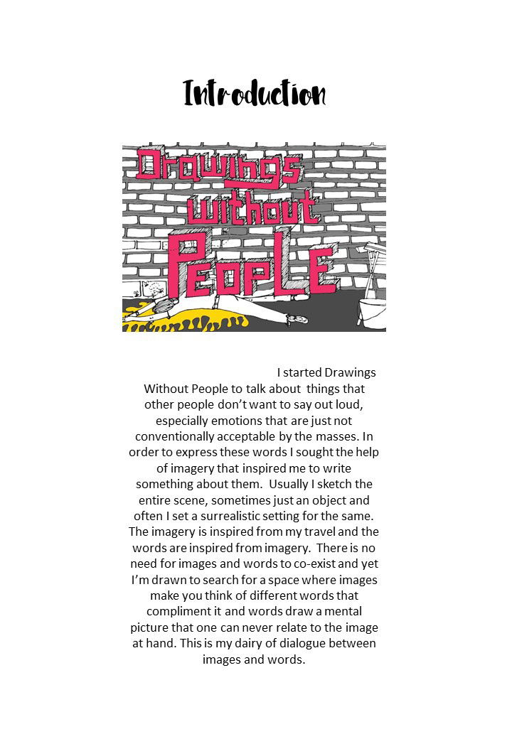 Drawings without people is an attempt at compilation of the non-articulate emotions of life through images and stories.