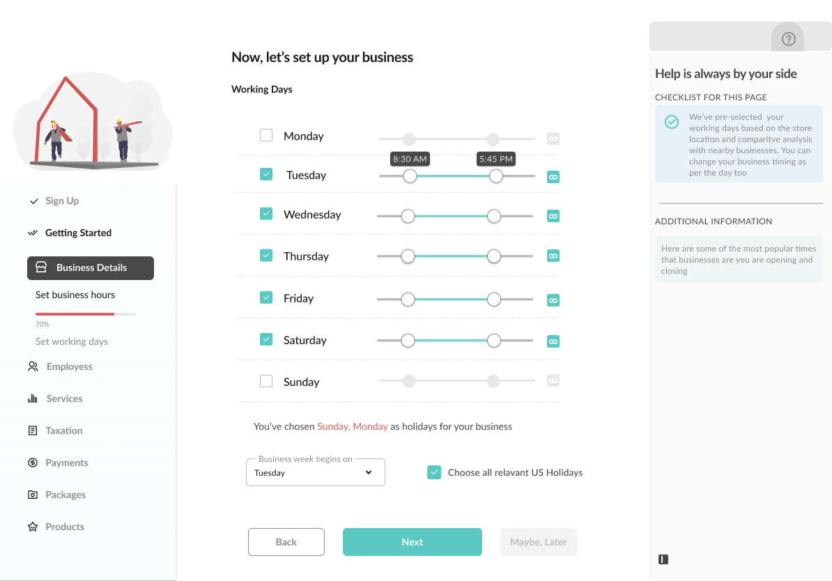 For this project, I was asked to create an onboarding journey for our small business customers where it was paramount that the business owner could set up the business all in a matter of a few hours. This is a high metric to achieve since our current enterprise users have a 10 people implementation team allotted to them to achieve the same result in a few days. There were technical constraints since I was re-imagining a process for a product that already existed.